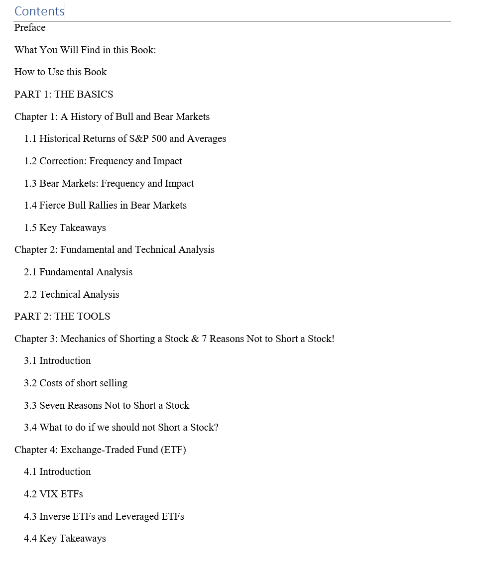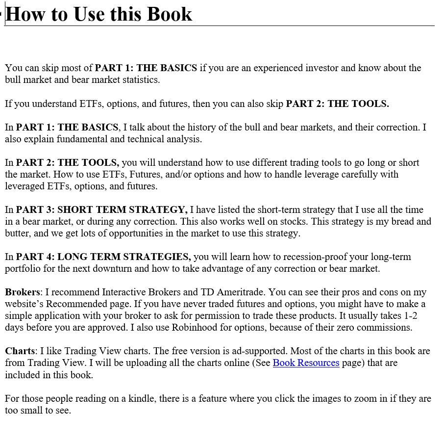 I am not a writer and this is my first book ever, I have very little experience writing books (but a lot of experience in the markets)....rest assured you will learn actionable strategies to take advantage of any down market moves. I am assuming you are not reading this book to pass time or entertainment but to quickly learn how to make money when everyone is panicking. So I have kept the book to the point.